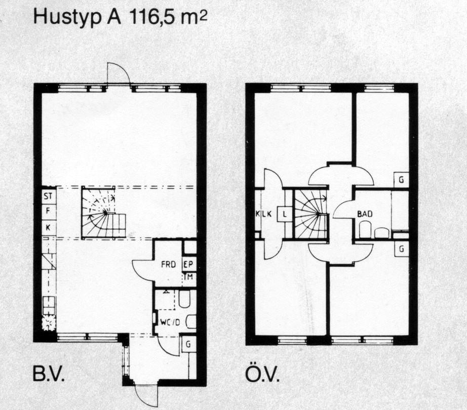 Lägenheterna delades in i typer när de stod färdiga 1993-94. Planlösningarna följer dessa typer: