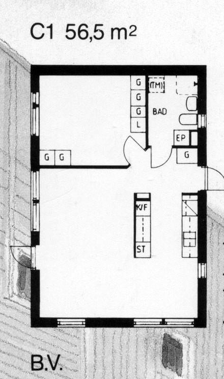 2 rum Typ C1 / 56,5 m², bv / Trossvägen 1A, 1B, 1C, 22A, 22B, 22C, 38A, 38B, 38C